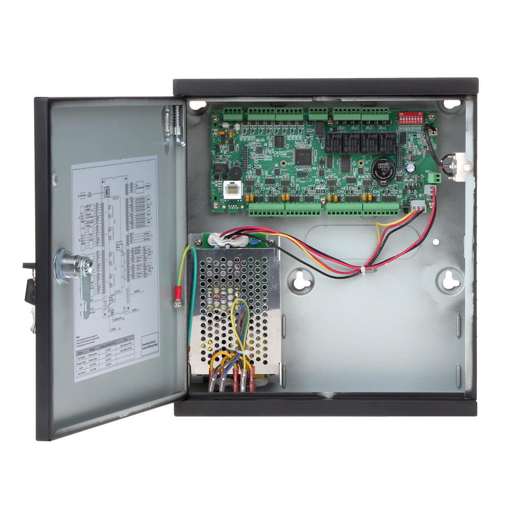 - Interfaz Wiegand o RS-485 para lectores (4 puertas)