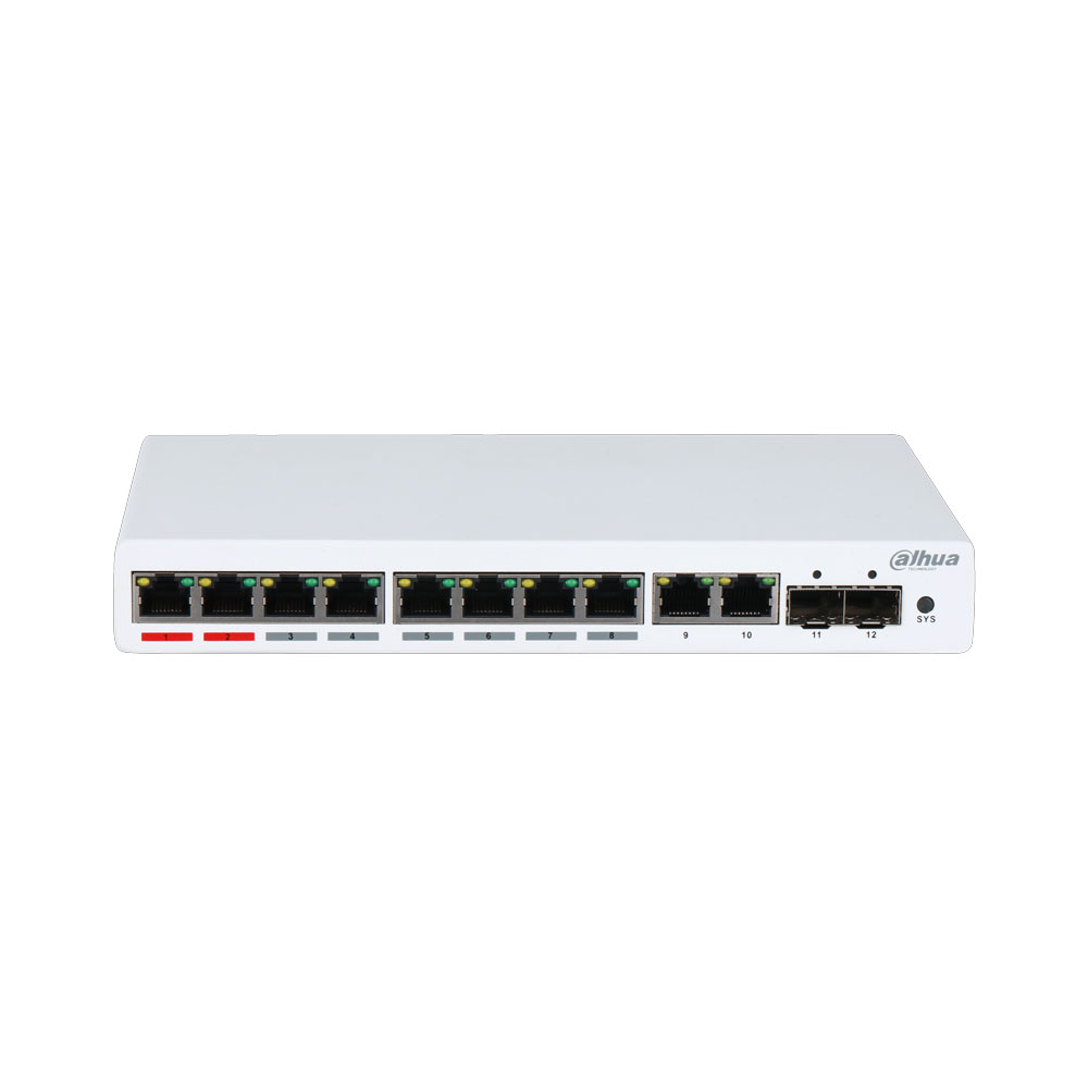 - Switch Comercial gestionable (L2) de 12 puertos Gigabit, 8 de ellos PoE