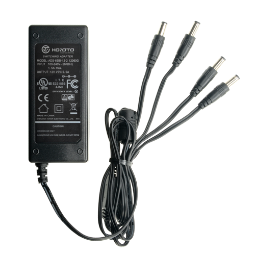 Se alimenta conectándolo directamente a la corriente alterna (AC 100/240 V) y proporciona alimentación contínua DC 12 V 5 A. Dispone de cuatro salidas con jack de alimentación estándar.