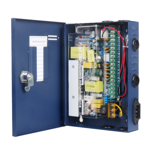 Caja de distribución de alimentación profesional. Se utiliza como fuente de alimentación centralizada para varias cámaras u otros dispositivos de seguridad ofreciendo protección individualizada.