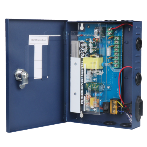 Caja de distribución de alimentación profesional. Se utiliza como fuente de alimentación centralizada para varias cámaras u otros dispositivos de seguridad ofreciendo protección individualizada.
