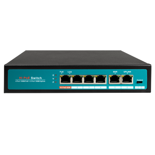 Interface 4 puertos PoE RJ45 10/100 + 2 Uplink